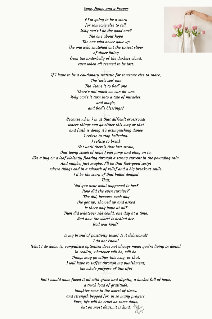 What I do know is, compulsive optimism does not always mean you’re living in denial.